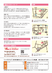 3/25(日) 13:30~15:00 長野 4/18(火) 19:00~20:30 岡谷 |