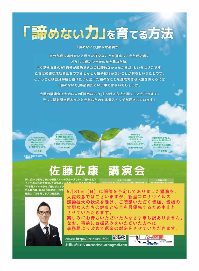 講演会のお知らせ「諦めない力」を育てる方法